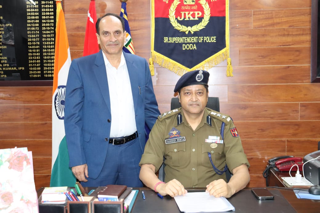 Sh. Sandeep Kumar Mehta-JKPS assumed charge as the Sr. Superintendent of Police Doda. The new incumbent officer was warmly received by Senior Police officers at the District Police Headquarters, where a guard of honour was presented in his honor.
